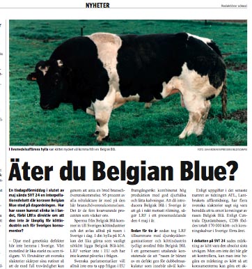 Idén till artikeln Äter du Belgian Blue? fick Linda Sörensson när hon låg i sängen på morgonen och slog på en debatt på SVT 24. Där pågick en debatt om korasen och den dubbelmoral som finns i svensk köttindustri.