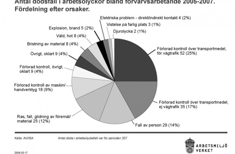 Varje dag året runt dör cirka 5 000 människor i sitt arbete runt om i världen, enligt LO. I Sverige dog totalt cirka 50 personer genom sitt arbete förra året och antalet anmälda arbetsolyckor med sjukskrivning som följd uppgick 2006 till nästan 14 000 stycken. Enligt LO är riskerna för olyckor tydligt klass- och könsrelaterade. Arbetare är värre drabbade än tjänstemän och kvinnor drabbas värre än män.