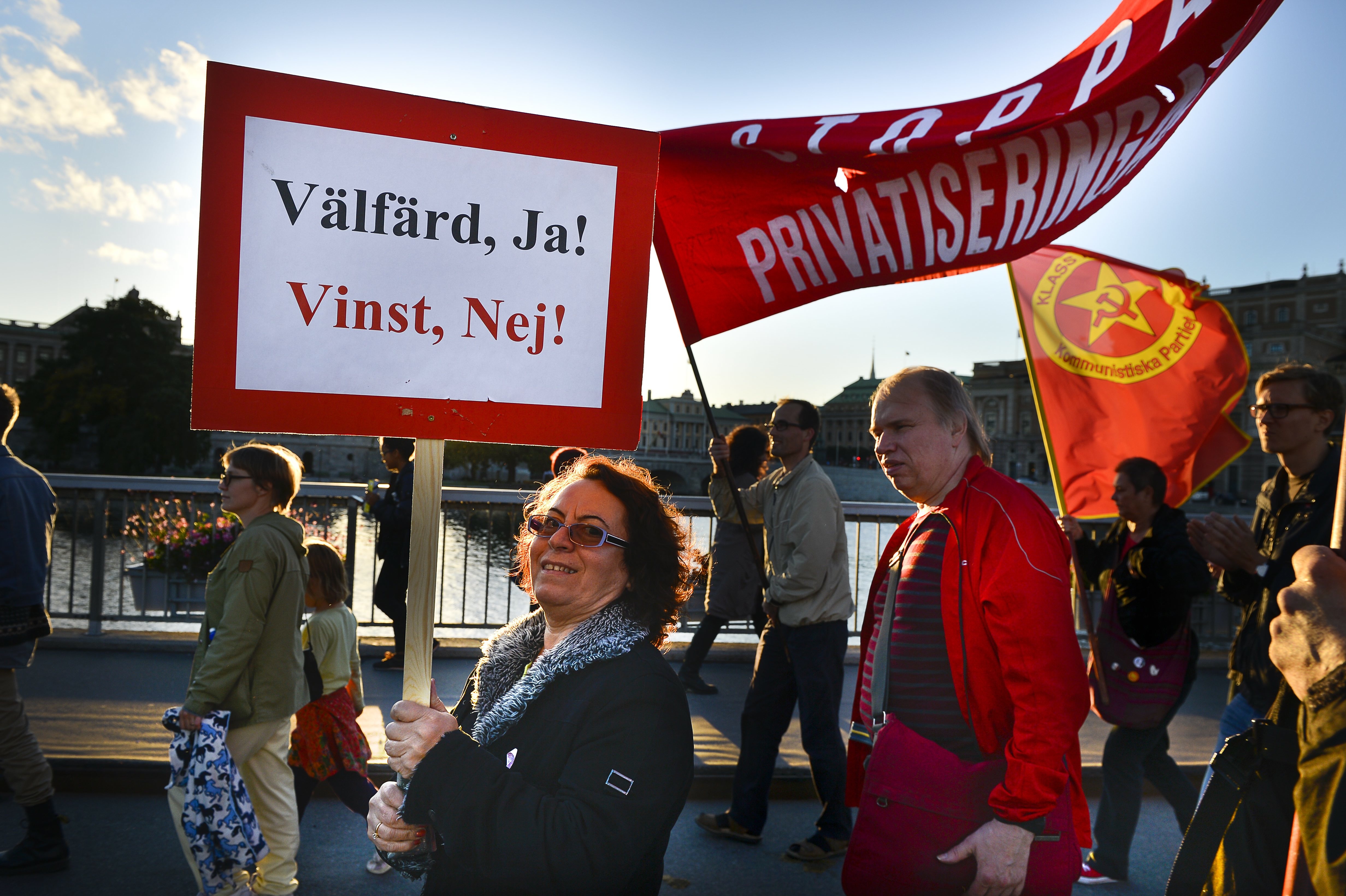 I helgen hålls landsomfattande manifestationer mot vinster i välfärden, från Luleå i norr till Malmö i söder. Samtidigt visar en ny opinionsundersökning som Sifo har gjort på uppdrag av Göteborgs-Posten att en majoritet av svenskarna är emot vinster i välfärden. Vänsterpartiet, som är det enda riksdagspartiet som driver frågan, ser ut att ha medvind.
