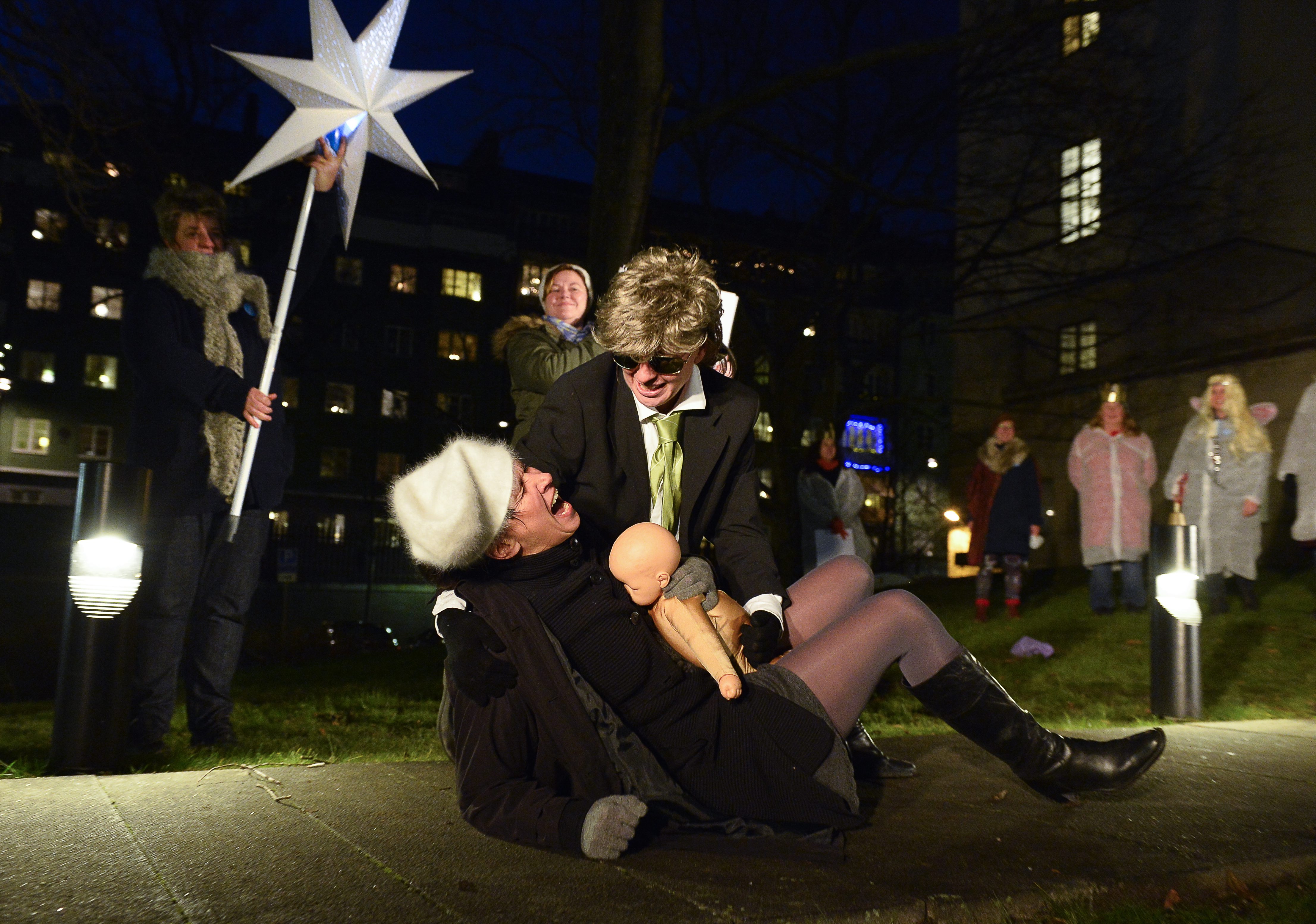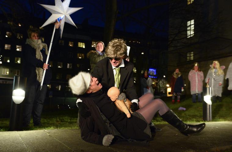 Barnmorskeupproret fortsätter kampen för en trygg och säker förlossningsvård. Tidigare i veckan höll de en manifestation i Stockholm och bjöd på julspel om Josef och Maria i förlossningskris.