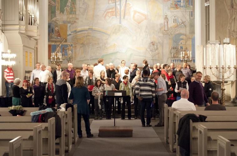 Kyrkan börjar denna tisdagskväll fyllas av körmedlemmar från de båda körerna. Det är nu de får ett kvitto på om de är redo inför lördagen eller inte. Men Raino Kirkma är inte speciellt orolig.