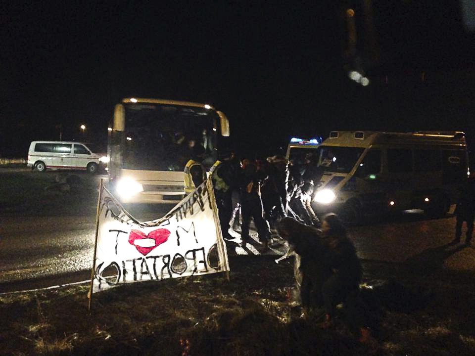 Två vitmålade bussar hämtade i veckan en grupp afghanska asylsökande från förvaret i Åstorp. Utanför stod ett tjugotal demonstranter. Tvångsutvisningarna har kritiserats av Svenska Afghanistankommittén och Flyktinggruppernas riksråd som inte anser att man ska skicka tillbaka någon till landet.