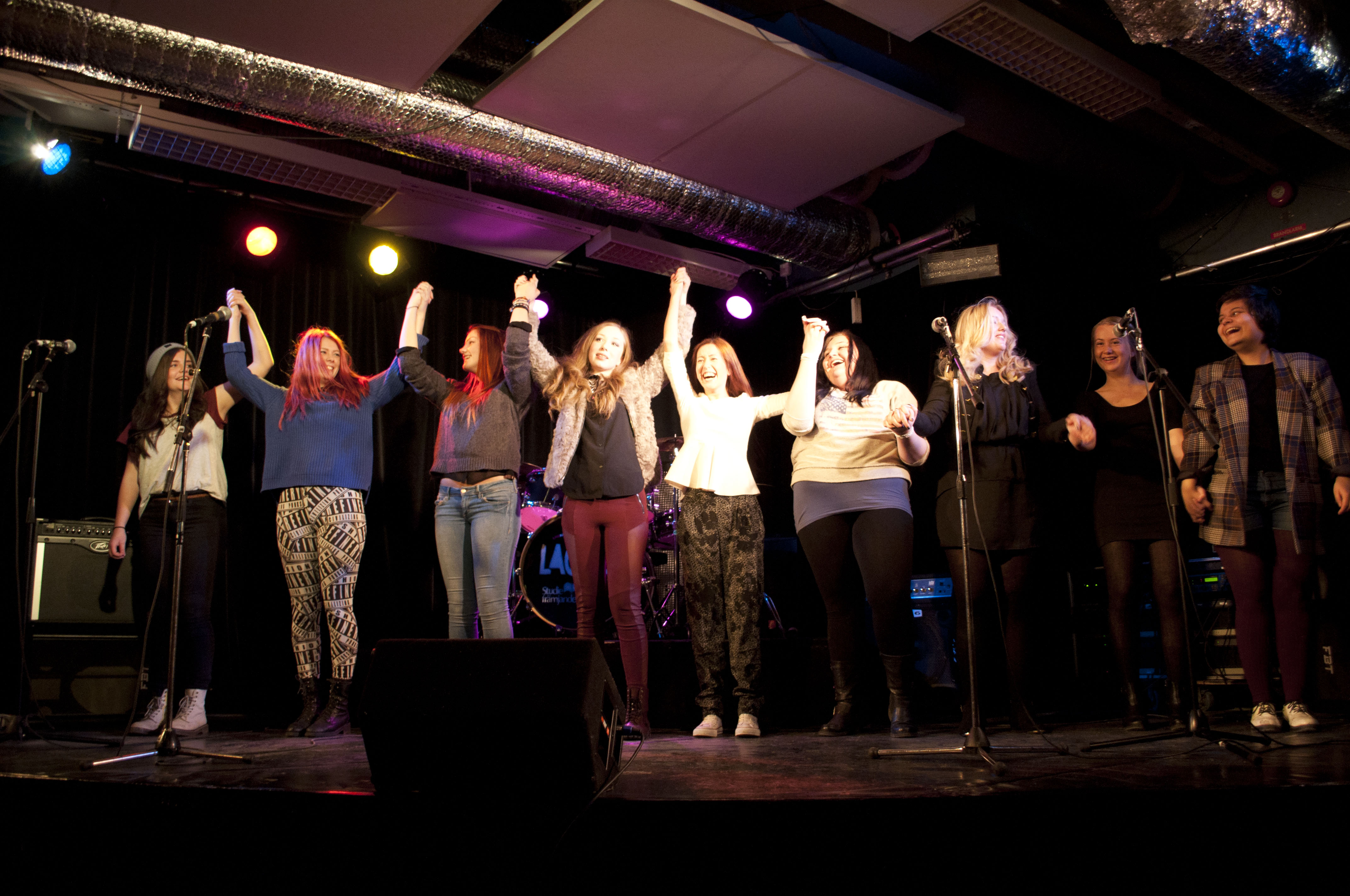 Efter det lyckade framträdandet, där tjejerna framför nio låtar, får SFT chansen att prata med några av huvudpersonerna för kvällen. Jasmin Khan berättar att hennes text, Falla fritt, handlar om att tappa sig själv, med allt vad det innebär.