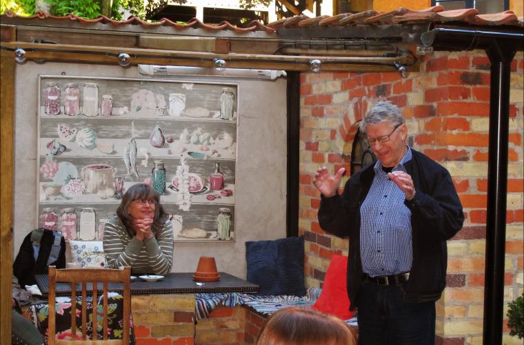 Berättarkafé på Atriumgården, Lund stadsbibliotek.