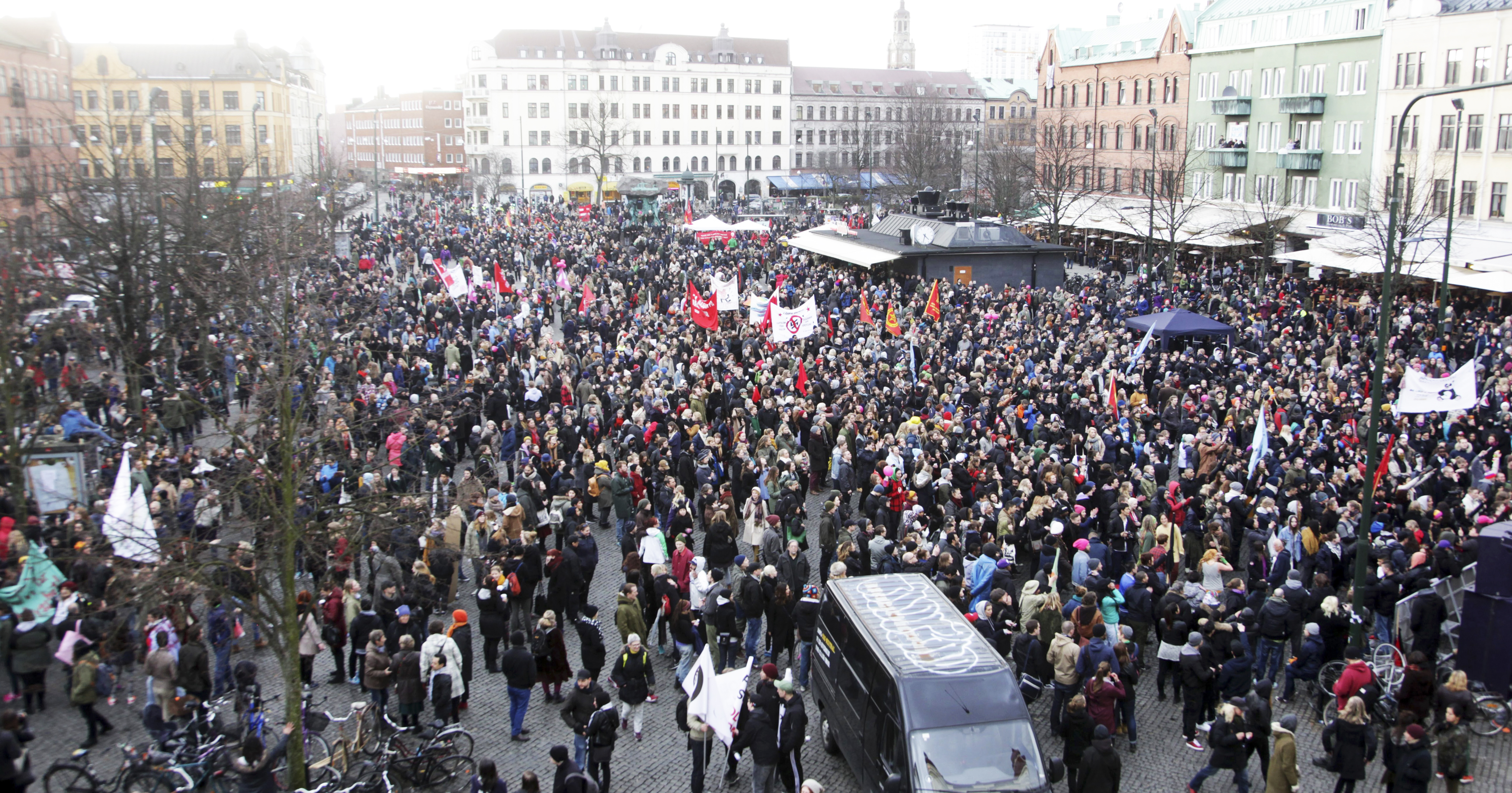Vi tar avstånd från det högerextrema våldet. Samtidigt kräver vi ett tydligare ansvarstagande från polisens sida. Feminister, antirasister och alla andra som vill försvara demokratin måste under fredliga former kunna demonstrera för sina åsikter utan att riskera liv och lem på gator och torg. Polisen måste kunna garantera åsiktsfriheten och demonstrationsrätten, annars är vi farligt ute.