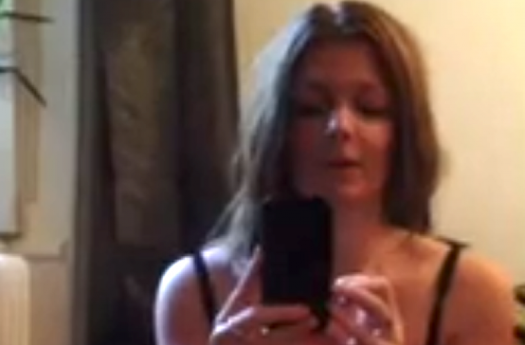 I början av filmen sitter Louise Östergaard på ett golv. Hon filmar sig själv med en mobiltelefon.
