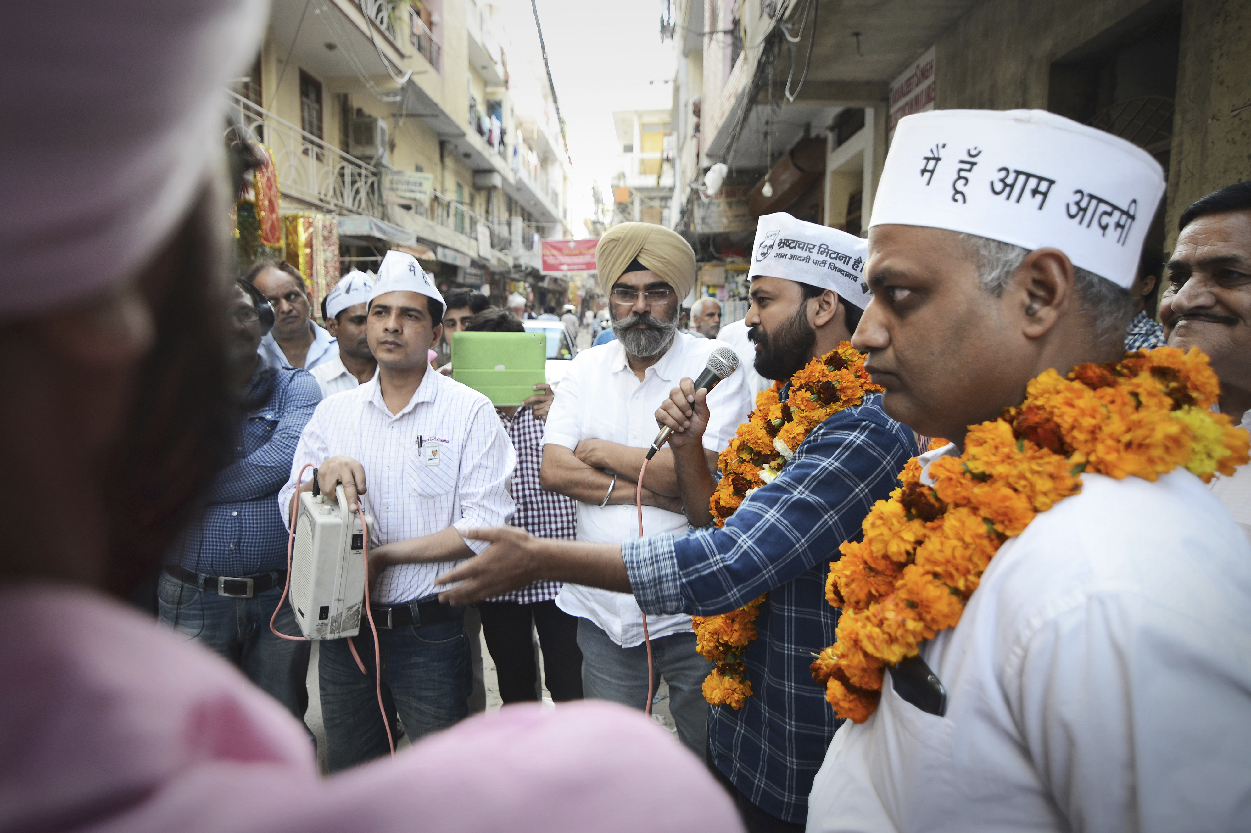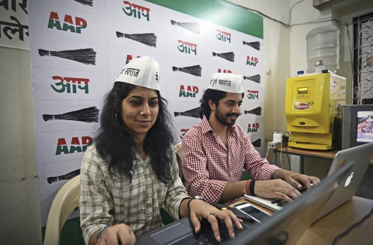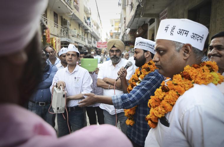 Klockan börjar närma sig tio i södra New Delhi. Ashish Khetan har redan hunnit med ett antal kampanjbesök under morgonen och verkar fylld av energi. Med bestämda steg styr han sitt följe mot nästa plats på listan, en lokal organisation som stöttar hemlösa i stadens utkanter. Iklädda sina karakteristiska vita hattar ropar partivännerna ut sina kampbudskap samtidigt som de knyter näven i luften. Tillropen får önskad effekt då nyfikna åhörare i alla åldrar strömmar till.