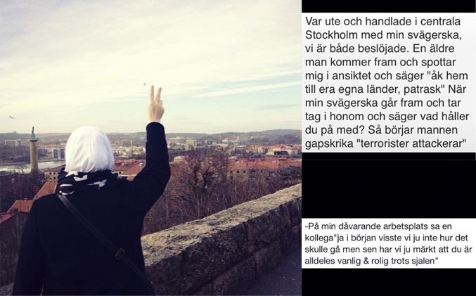 En vecka efter att #muslimskkvinna-kontot blivit känt för mig, vaknade jag till nyheten om att ytterligare ett rasistisk och sexistiskt brott ägt rum. Jaian fick sin slöja avdragen av en, för henne, okänd man i en butik mitt på dagen i Karlskrona. Ingen ingrep.