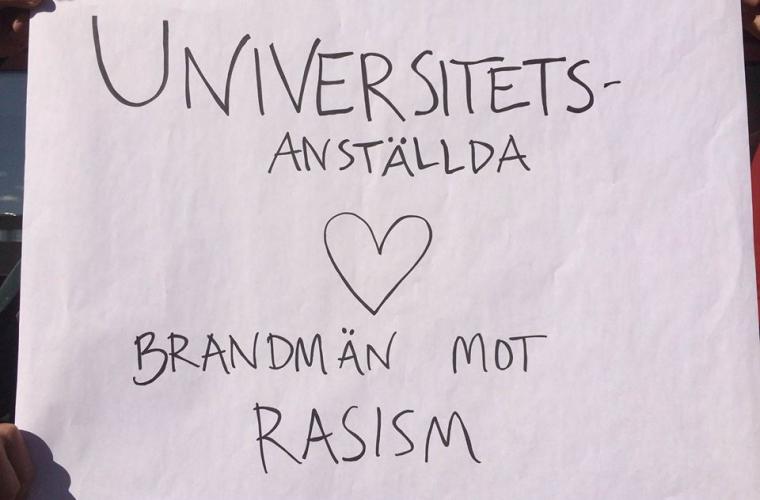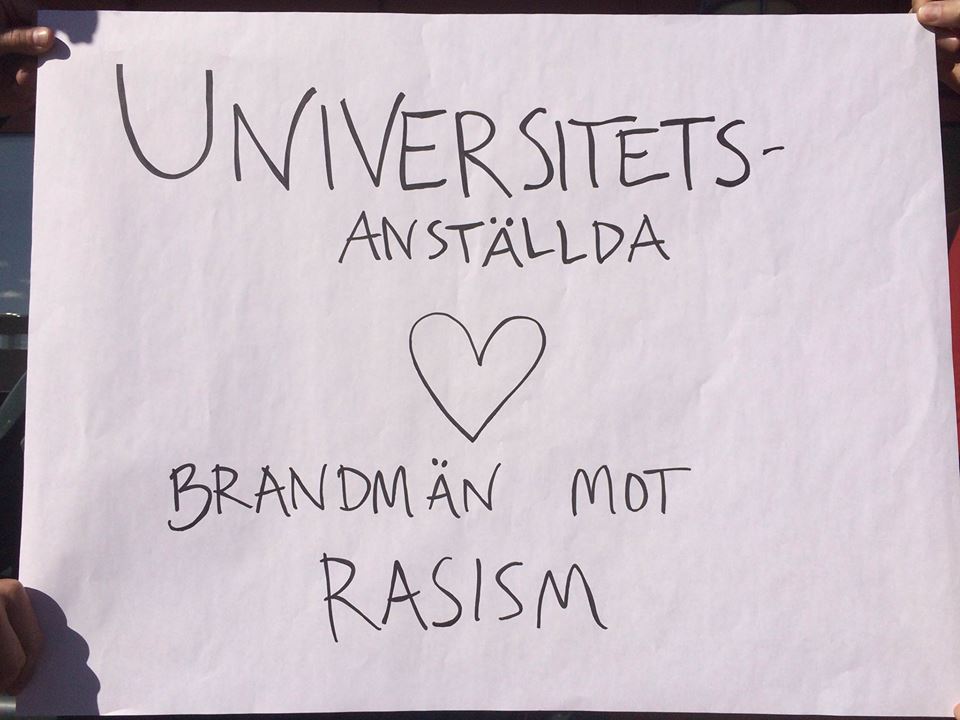 I anslutning till de breda antirasistiska och antifascistiska arbetsplatsprotesterna runt om i landet där SD och SDU försökt göra besök (till exempel brandmän mot rasism, sjuksköterskor mot rasism et cetera.) vill även vi som universitetsanställda agera mot både SD och SDU:s deltagande i syfte att markera att vi inte vill att vår arbetsplats utgör en plattform för fascistisk och rasistisk propaganda.