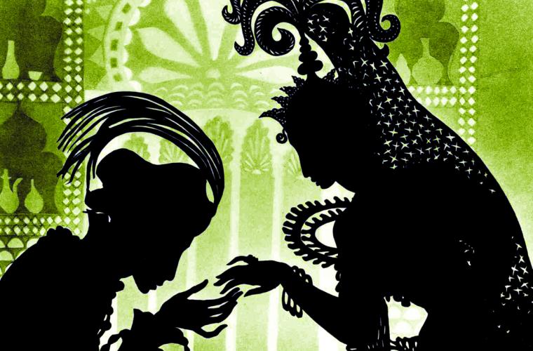 Svarta gestalter rör sig genom sirliga byggnader och skogar, i bakgrunden en mjuk fond av blått och gult. The Adventures of Prince Achmed är en animerad stumfilm från 1926. Dungens gitarrist, Reine Fiske, berättar via telefon från Norge varför de valt att göra musik till den filmen.