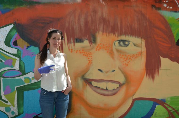 Det senaste tillskottet på graffitiväggen vid Malmö Folkets park är ett porträtt av Pippi Långstrump. Skånes Fria haffade konstnären Emmi Lou, från Graffitifrämjandet när hon skapade bilden.