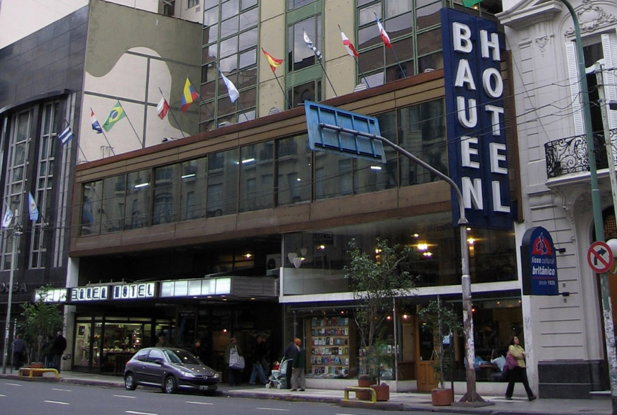 Vid en ytlig anblick är det inte mycket som skiljer Hotell Bauen från talrika andra hotel på samma livligt trafikerade gata i centrala Buenos Aires, bara tre kvarter från parlamentsbyggnaden. Lobbyn är propert elegant och i ett hörn spelar en äldre man spelar bakgrundsmusik på ett piano.
