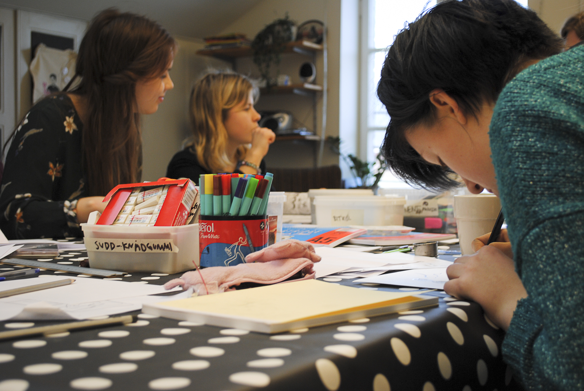 En liten grupp ungdomar har tagit plats i Arena 29:s lokaler på Djurgårdsgatan i Majorna. Det är den andra och sista dagen av den workshop i serietecknande som anordnats av Ateljén, en av Arena 29:s verksamheter.