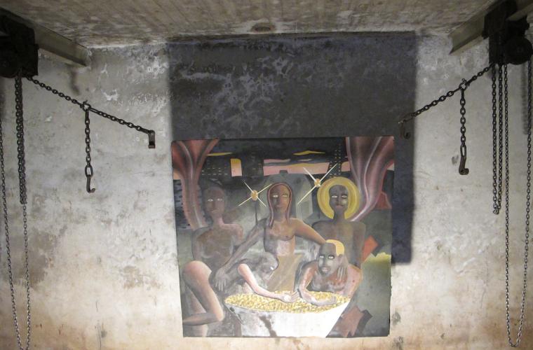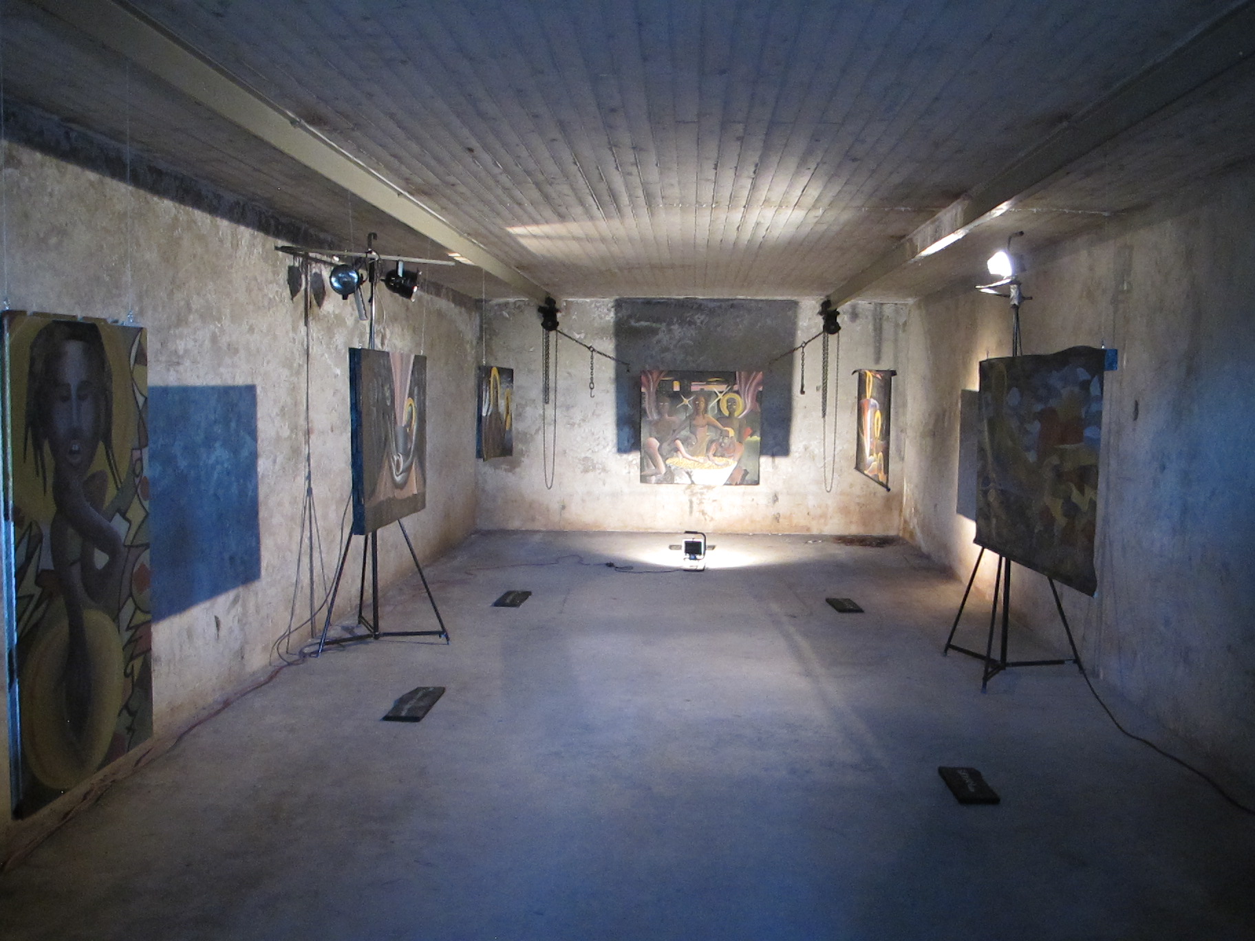 Catarinas utställning består av tjocka ofärgade vaxdukar som hänger från bunkerns tak. Installationen påverkar ljudet inne i bunkern. Hon kallar sin installation för Maktrelationer men säger att verket i sig inte har något namn.