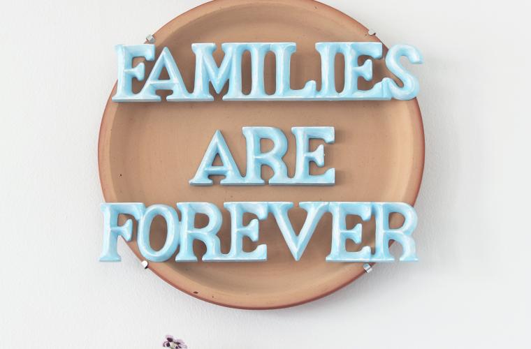 En sjabbig vas, ljusstake och tavla med skriften ”Families are forever” är grunden i en ny utställning på Röhsska museet där konstnären Zandra Ahl ställer frågor kring våra status och familjenormer.