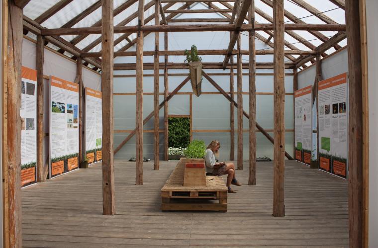 I den tillhörande paviljongen som är byggd av volontärer och gjord av återviningsmaterial finns en utställning i tre delar. I den första delen, The green hall, finns en faktadel där det går att läsa om olika sorters jord i ett globalt sammanhang. Där går det även att lukta och känna på jorden för att få en känsla för vad det är. Går man sedan vidare till The learning lounge som är en levande örtgård går det att se hur ett större ekologiskt system fungerar. Hur jorden arbetar med vår mat. All fakta i rummet är baserat på vetenskapliga grunder.