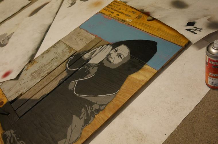 Berlinbaserade gatukonstnären Alias anländer till Arlanda med 70 kilo stenciler i bagaget. Arbetet börjar med några dagars jakt på material på båtvarv och industriområden. När vi träffas bor han på en tältsäng i ett litet garage utan fönster, vilket fungerar som galleri.