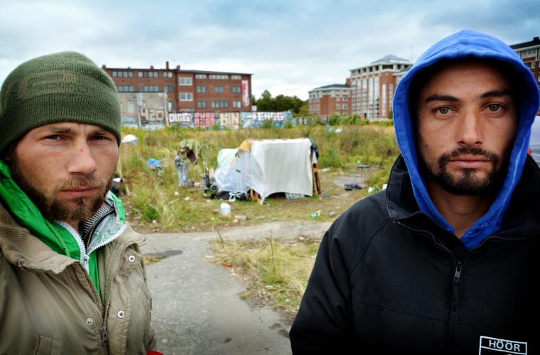 Himlen hänger gråblå över Malmö och vinden viner snålt. Mijloc och Florin, som kallar sig bröder, har ställt upp varsitt tält på marken. De har bott här i en månad och är vana vid polisbesök.