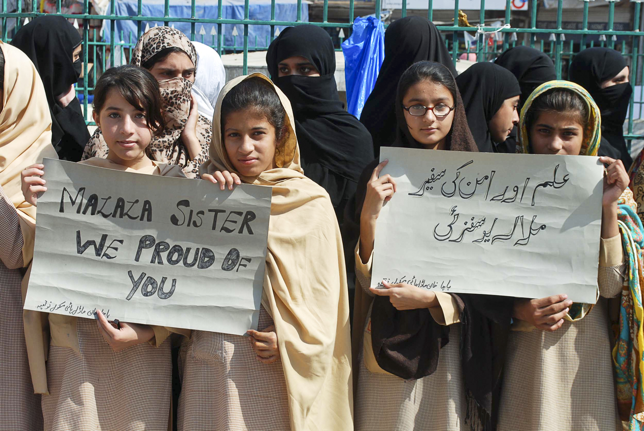 – Vi hoppas att regeringen kommer att erbjuda oss möjlighet att gå i skolan. Vi vädjar till Malala Yousafzai att använda prispengarna till att främja utbildning i klanområdet Fata, säger hon.