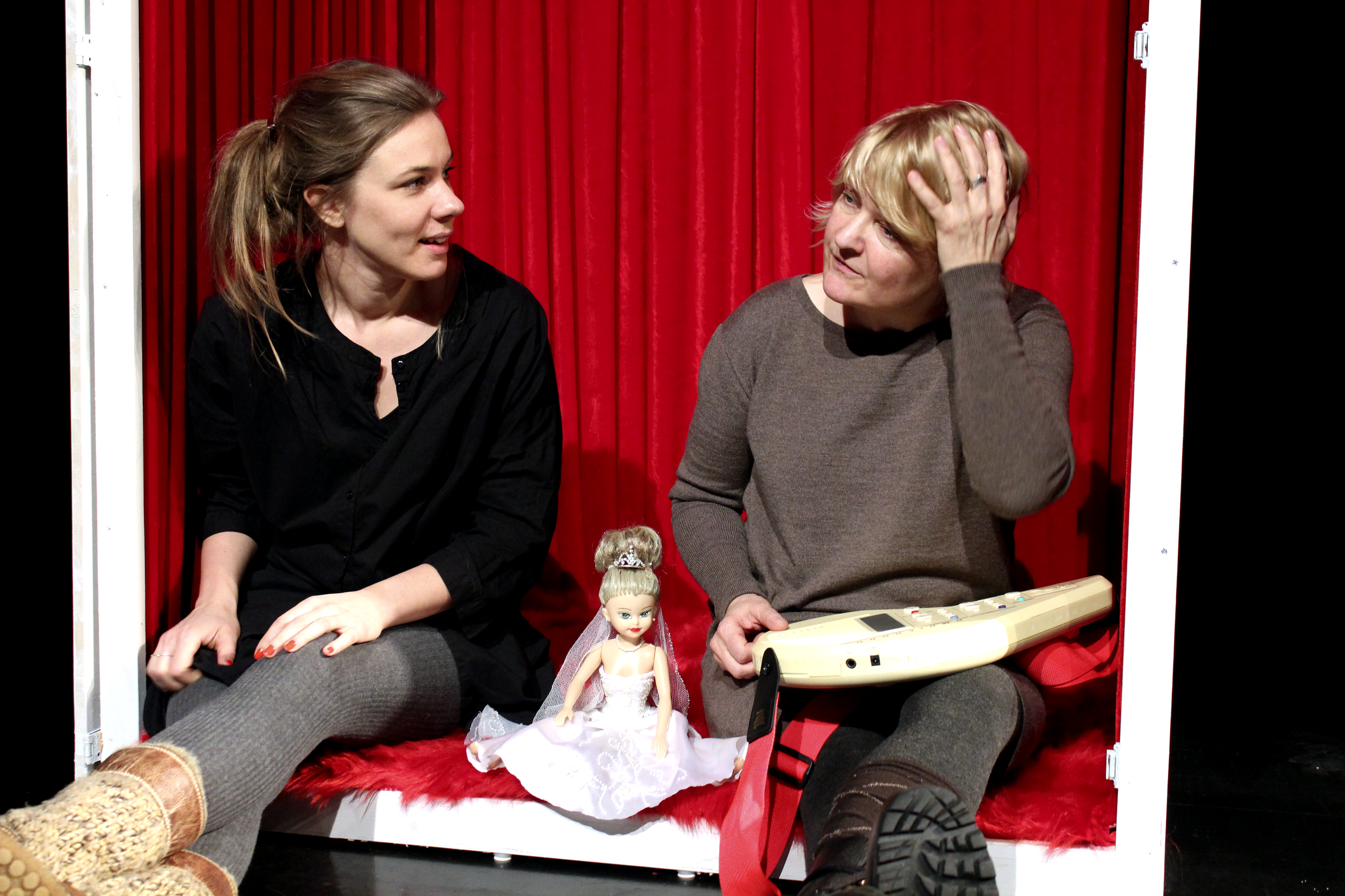 Genom dialoger, musik och sång gestaltar Helena Gezelius och Åsa Gustafsson menshistorierna på scenen. De ger också publiken information och fakta om hur till exempel menscykeln fungerar.