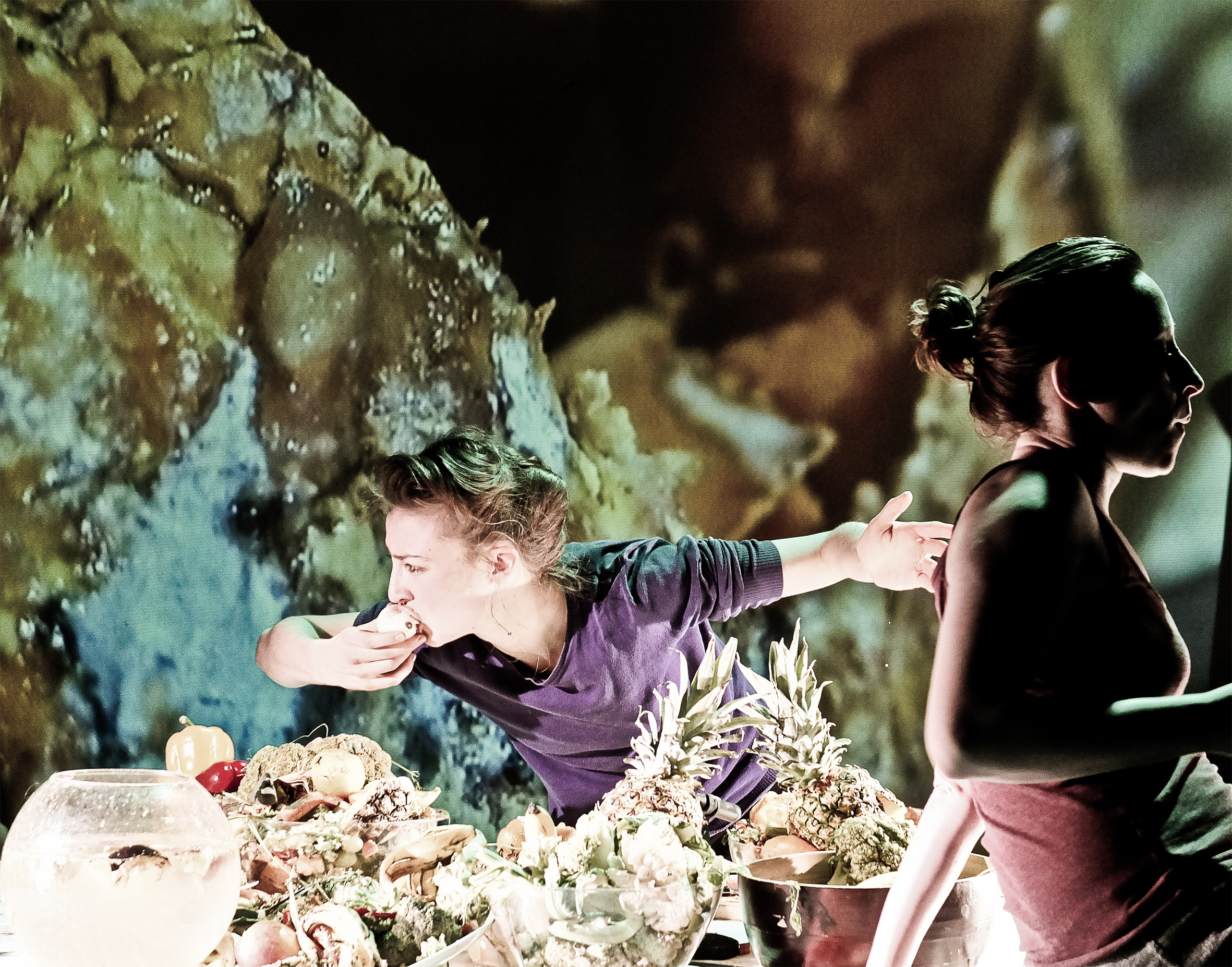 Rätterna består av allt från olika sorters grönsaker till sjöanemoner vilka dissekeras bildmässigt, in i minsta detalj. Filmmaterialet återspeglas av dansarnas kroppar och resultatet blir en ren science fiction-sörja. När det vackra förvandlas till en motbjudande massa får föreställningen en nästan apokalyptisk framtoning, jag kommer i alla fall i undergångsstämning.