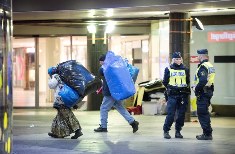 • Polisen kör bort EU-migranter som övernattat på Sergels Torg.