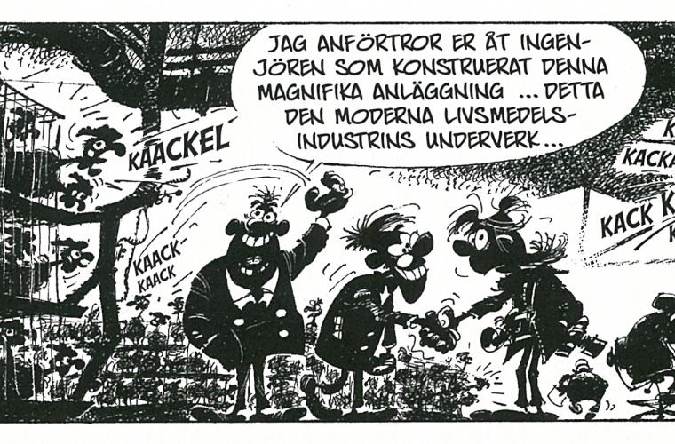 Andra teman är militarism och miljöförstöring och dessutom återfinns här flera djurrättsligt färgade serier. Inte minst tar Franquin vällustigt livet av en rad jägare genom att på olika finurliga sätt utsätta dem för det som de själva gör mot djuren. Han tar oss också med på ett besök i en kycklingfabrik där ingenjören råkar sugas in i produktionsprocessen och komma ut som en konservburk.