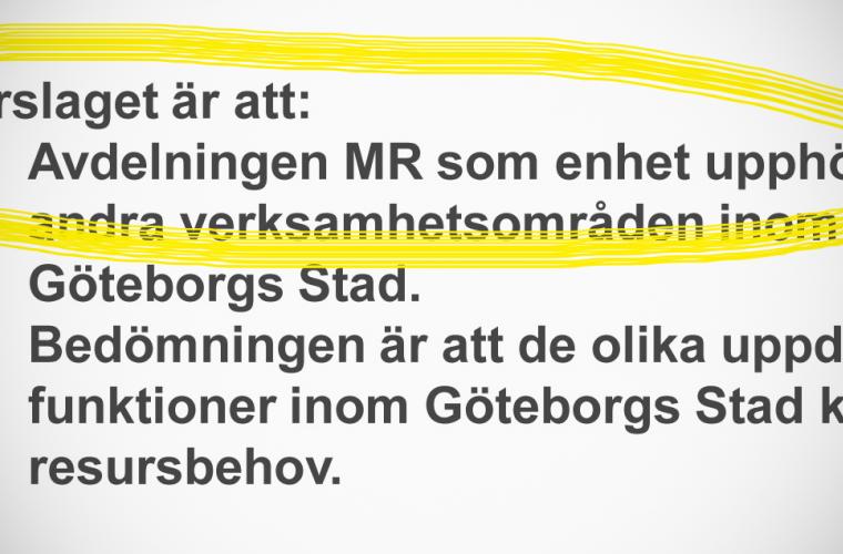 Göteborgs stad kan lägga ner hel MR-avdelning