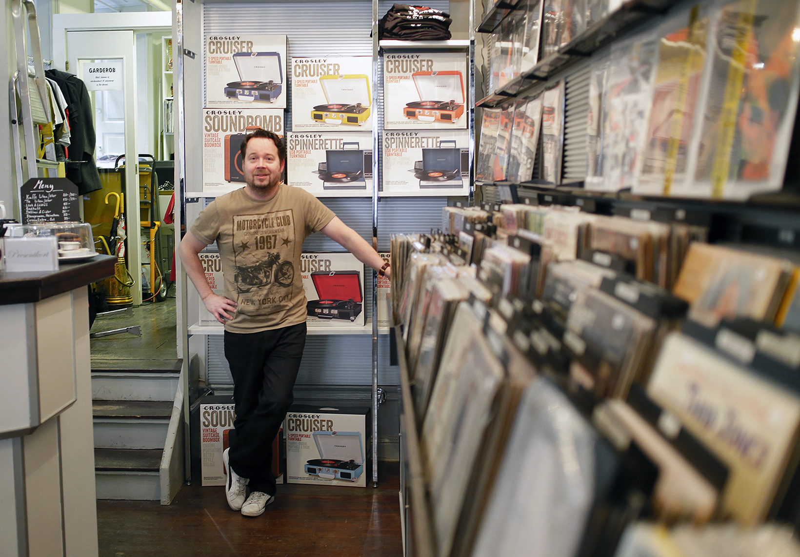 – Den här veckan börjar vi faktiskt med skivspelare också. Alla tycker att det är häftigt med vinyl, då påverkas de unga också. Men ungdomar vill inte ha de där stora 80-talsracken, så vi har tagit in portabla skivspelare som ser ut som resväskor.