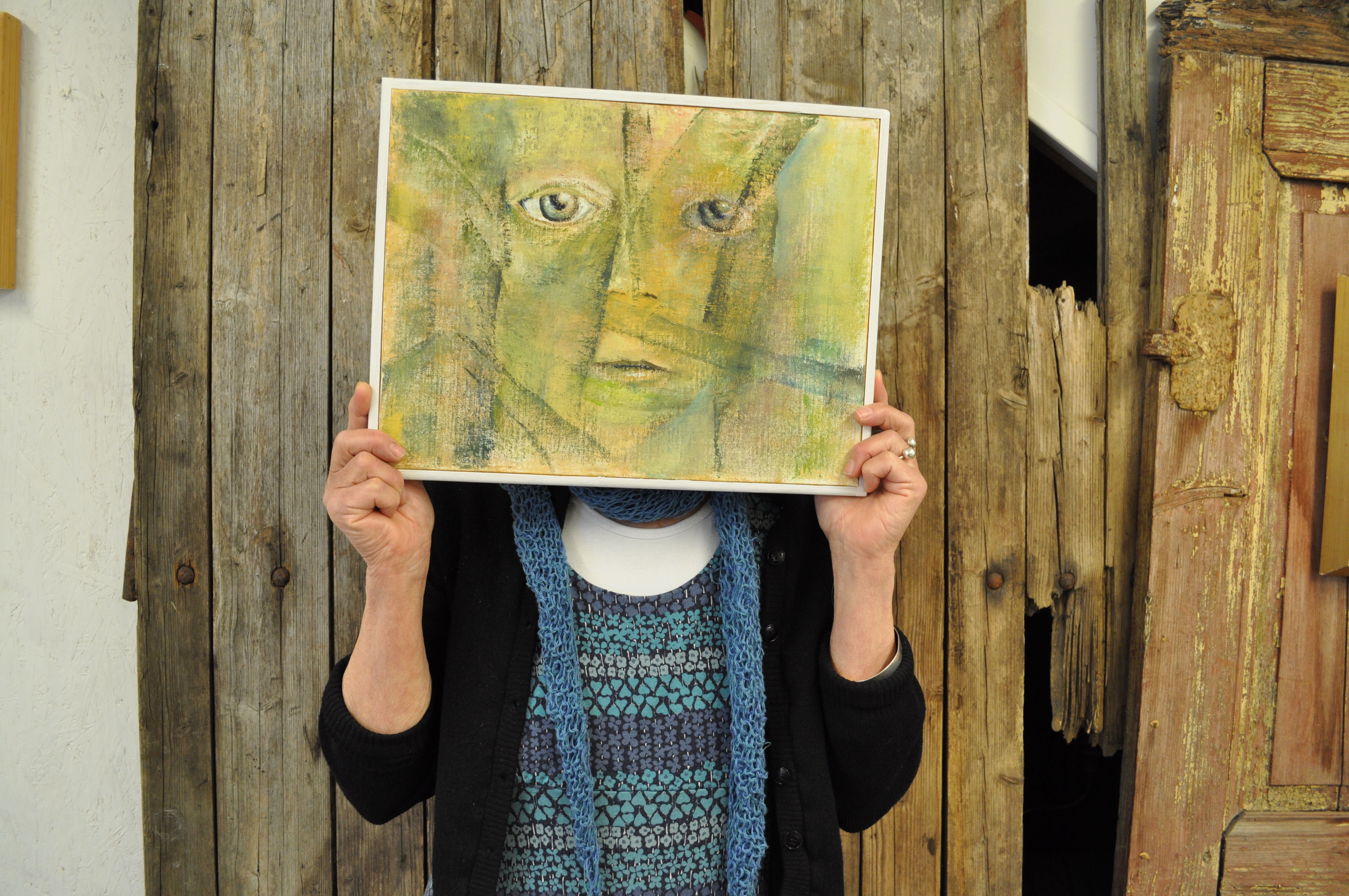 Men Mitta Klint-Åberg ger sig inte. Hon håller upp tavlan framför ansiktet.