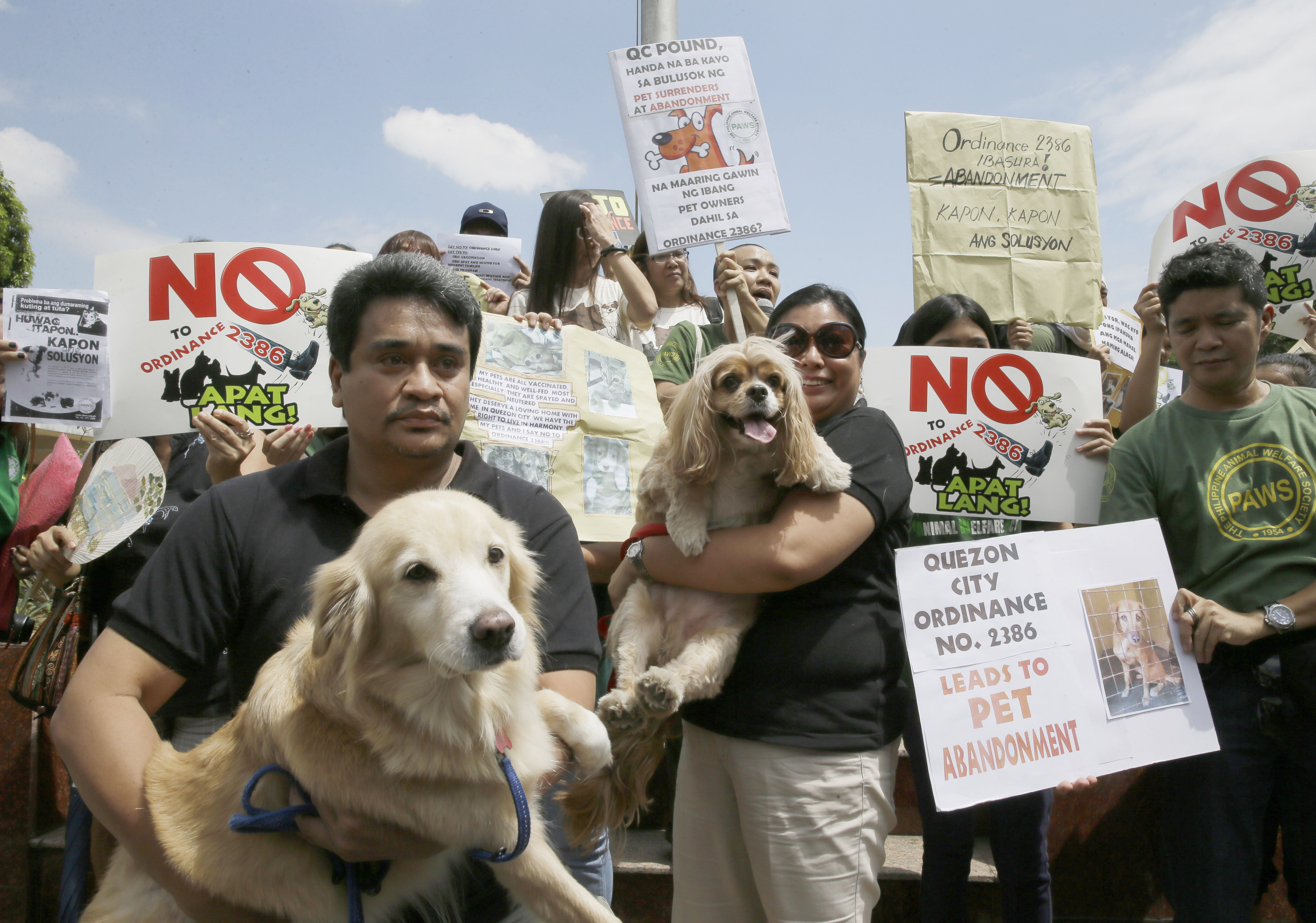 I onsdags samlades djurrättsaktivister och djurägare vid stadshuset i staden Quezon city på ön Luzon i Filippinerna för att tillsammans protestera mot den nya bestämmelsen som begränsade antalet husdjur till högst fyra per hushåll. Djurförordningen om styrning och kontroll blev lag den 13 mars och kritiserades hårt av både djurrättsorganisationer och djurägare.