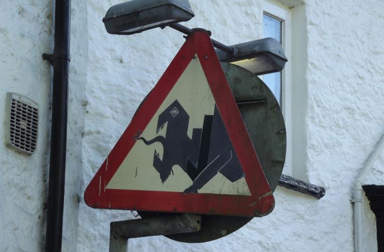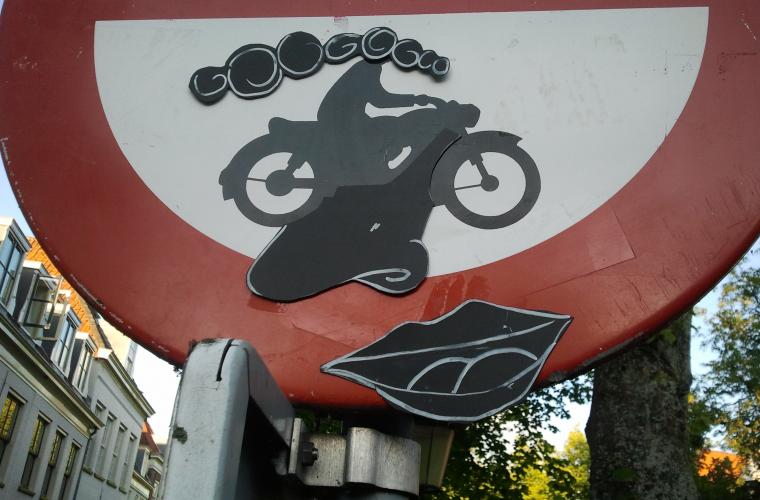– Det blir en ganska absurd tolkning av historierna. Ofta får vi använda oss av förenklade bilder på grund av trafikskyltarnas symboler, de har sina begränsningar i formspråk och färger, så vi anpassar bilderna för att smälta ihop med trafikskylten. Vi tar mycket inspiration från gatuartister som jobbat med trafikskyltar.