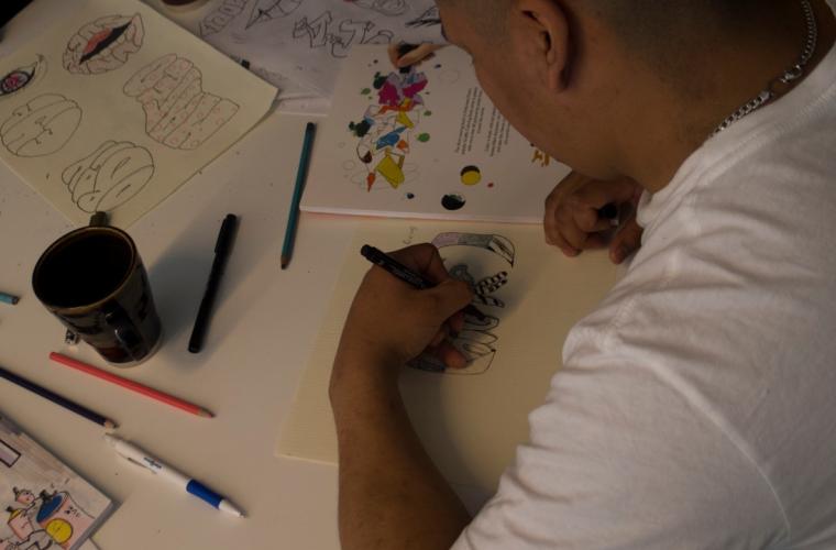 Förutom att måla graffiti tecknar hon mycket och skulpterar också i tenn.