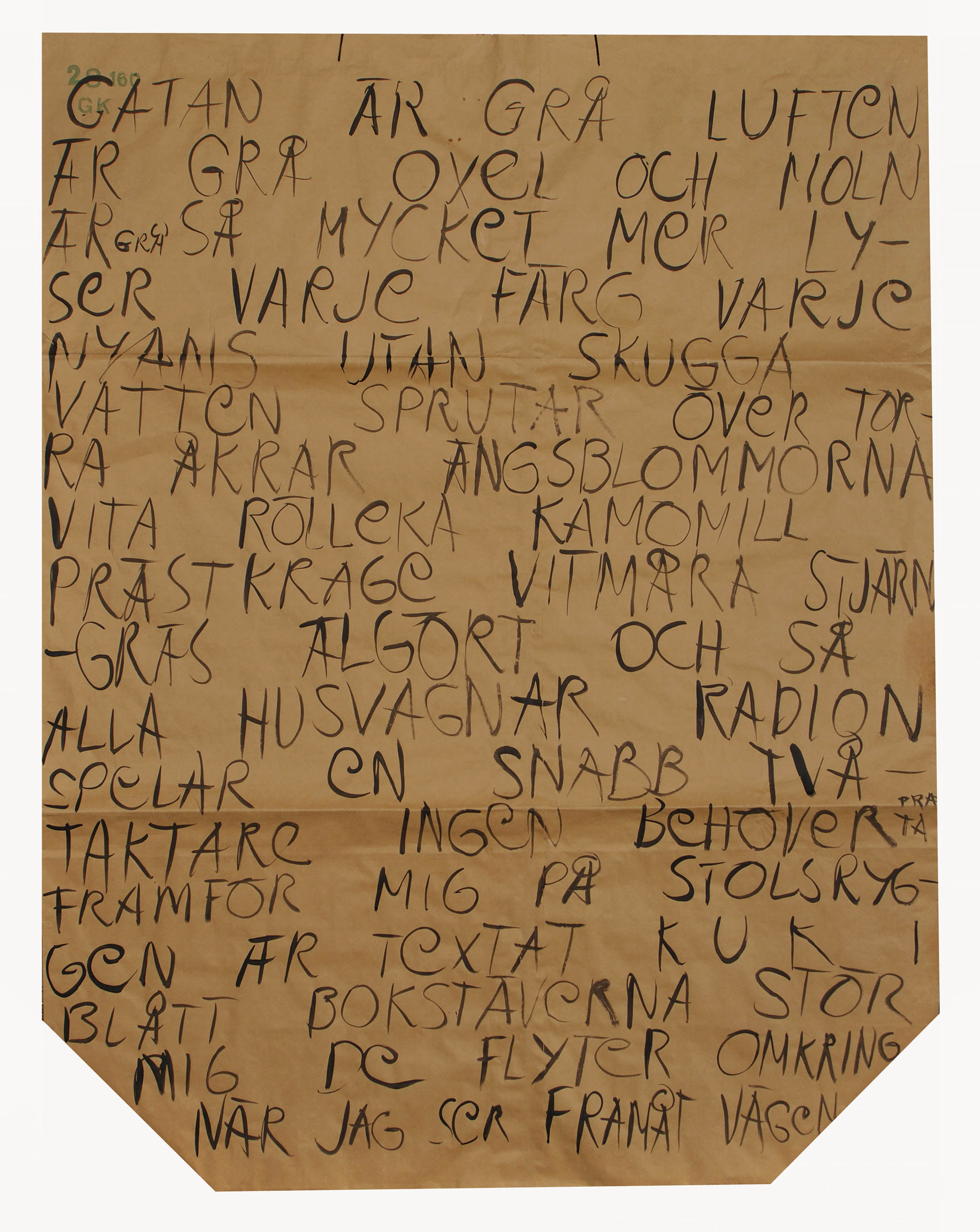 – Jag tror att det som upprör är materialet, och att det är en text istället för att vara avbildande. Men jag upplever den mycket som ett slags impressionistisk bild som Kerstin Suni har gjort med ord. Hon har gjort mycket textbaserade verk, och färgskalan är hennes.