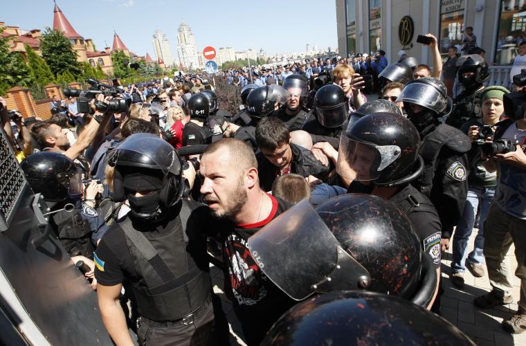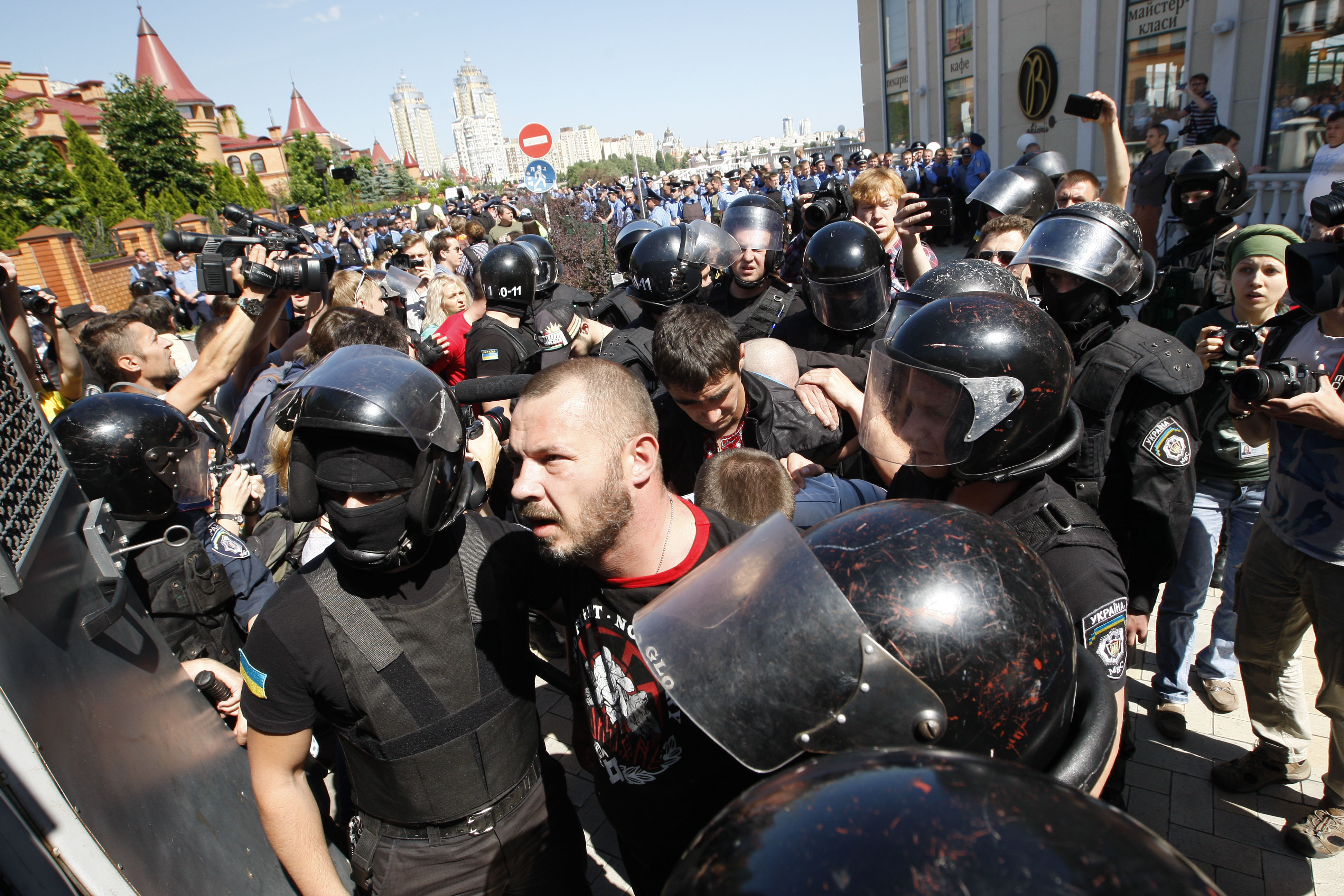 2 000 poliser var på plats för att skydda de 250–300 deltagarna i Ukrainas huvudstad Kievs andra Pride-parad. Trots det blev situationen snabbt våldsam. Högerextremister hade samlats och skrek slagord, kastade rökbomber och sprutade tårgas mot deltagarna. 10 paraddeltagare och minst fem poliser skadades.
