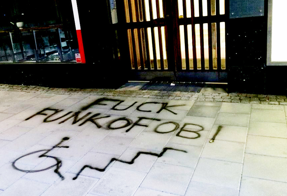 – Det är funkofobi när SVT Debatt proklamerar ut fosterdiagnostik och utrensning av personer med avvikande funktionalitet eller att man, som i Norrköping, bygger en gigantisk trappa ”för att öppna upp staden” men bortser från den del av befolkningen som inte an gå i trappor.