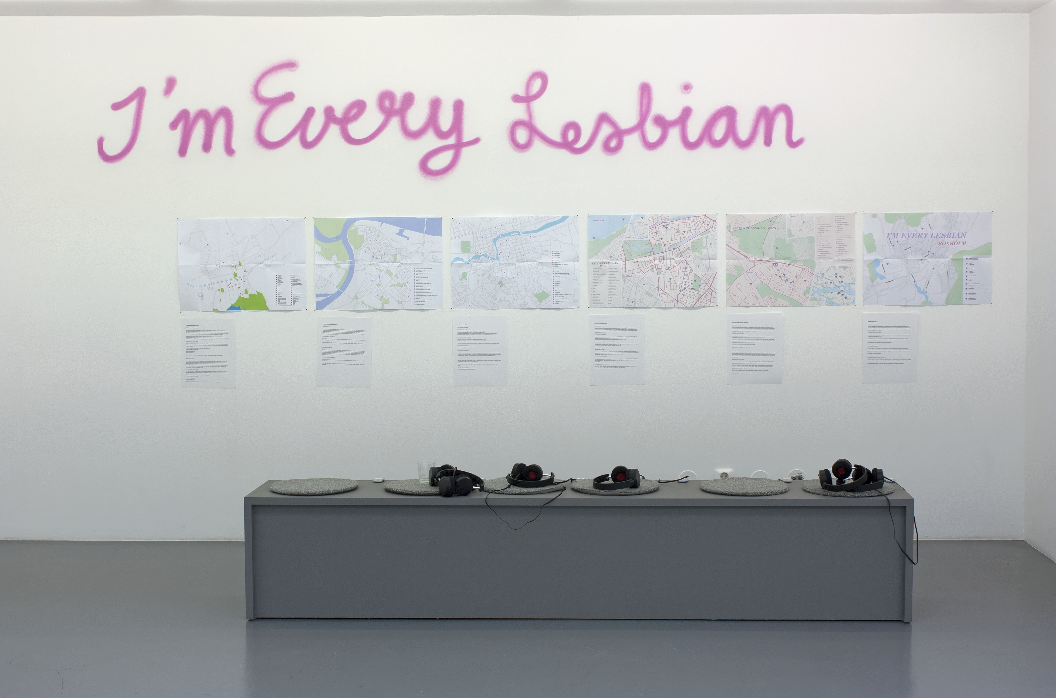 Sofia Hultin har genomfört versioner av sitt verk I’m every lesbian till sex olika städer, bland annat Norrköping och Boxholm. Det bygger på berättelser från lokala lesbiska personer om platser som betyder något för dem. För varje ort har Sofia Hultin skapat en stadsvandring där hon återger historierna i jag-form, med en audioguide och en karta. Alla dessa ställs nu ut på Passagen i form av ett slags påbörjat arkiv.