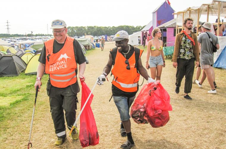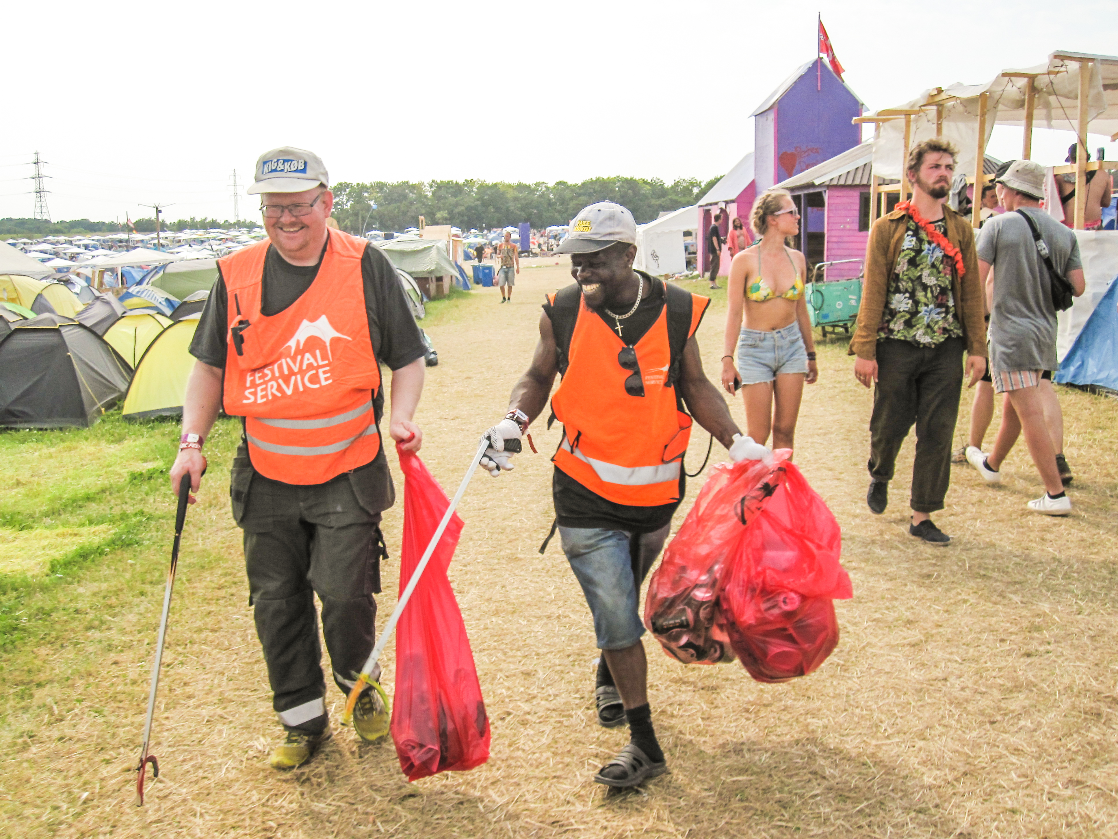Den danska scoutgruppen Blå Spejdere har varit med på Roskildefestivalen i fem år. Det började med ett litet scouttält och 20 personer. Nu har de två stora tält och 120 volontärer. För tre år sedan inledde de ett samarbete med en lokal flyktingmottagning och bjöd in deras boende att delta som funktionärer. I år deltog mer än 45 nyanlända.