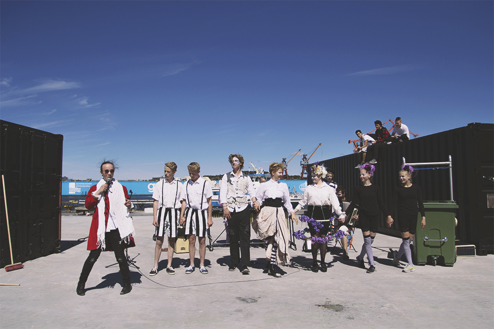 Tillsammans har gruppen av kultursommarjobbare under fyra, som Caroline Gustavsson beskriver det, intensiva dagar jobbat fram föreställningen. De fick hjälp av en coach men idén var deras egen.