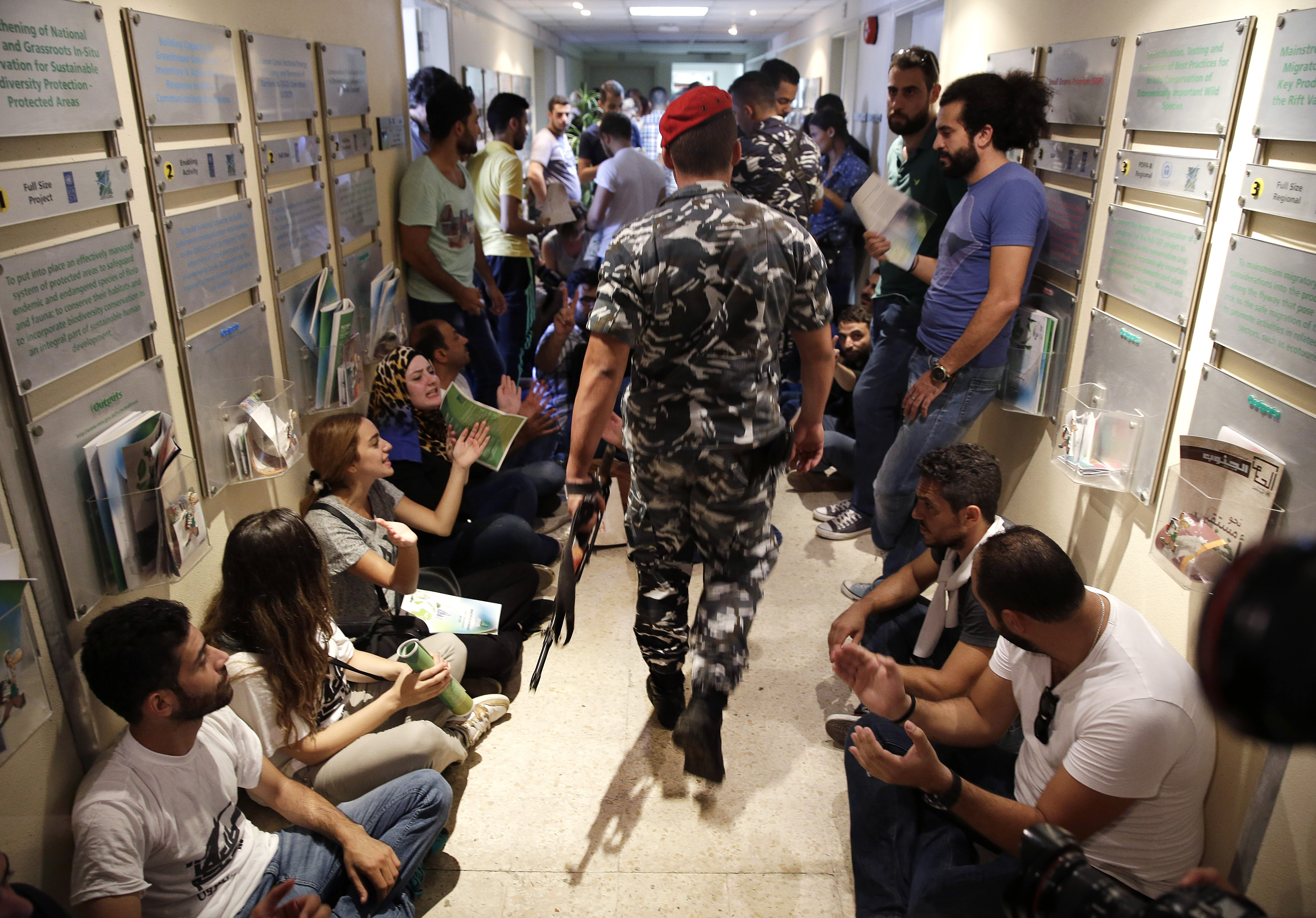 Efter nio timmar släpades de runt 20 demonstranterna tillslut ut från miljödepartementet i den libanesiska huvudstaden Beirut i onsdags. Aktivisterna, som genom en sittprotest begärde miljöministerns avgång, kommer från den nybildade miljögruppen ”You Stink” som bildades efter kollapsen av stadens sopsystem i slutet av juli.
