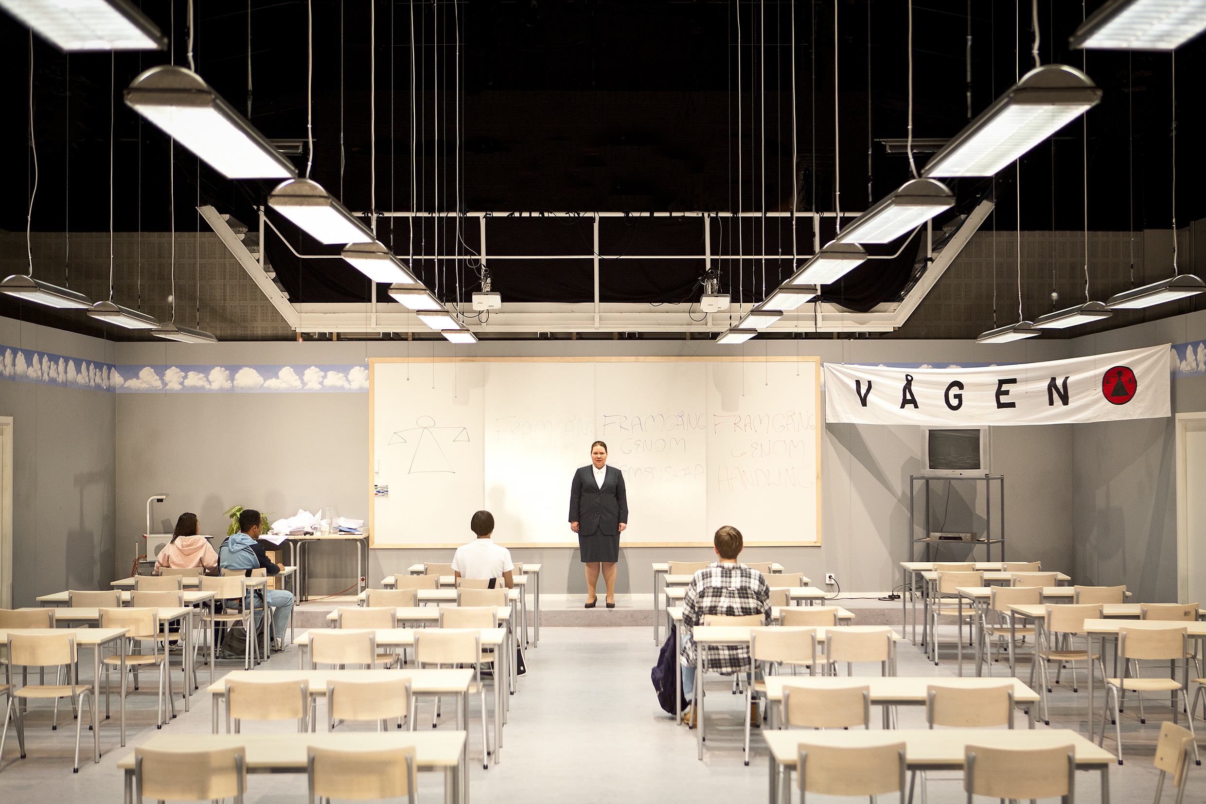 Den här uppsättningen av pjäsen utspelar sig 1997. Scenografin är ett klassrum med den klassiska overheaden och tjock-tv:n. Åskådarna kommer sitta i bänkarna tillsammans med skådespelarna som gestaltar elever, och läraren kommer att röra sig bland dem.