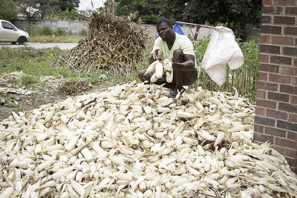 Förskoleläraren Agness Samwenje i Harare-förorten Mufakose tillhör den växande skaran som inte får lönen att räcka till. Hon har en egen odling på en outnyttjad bit mark i Harare.