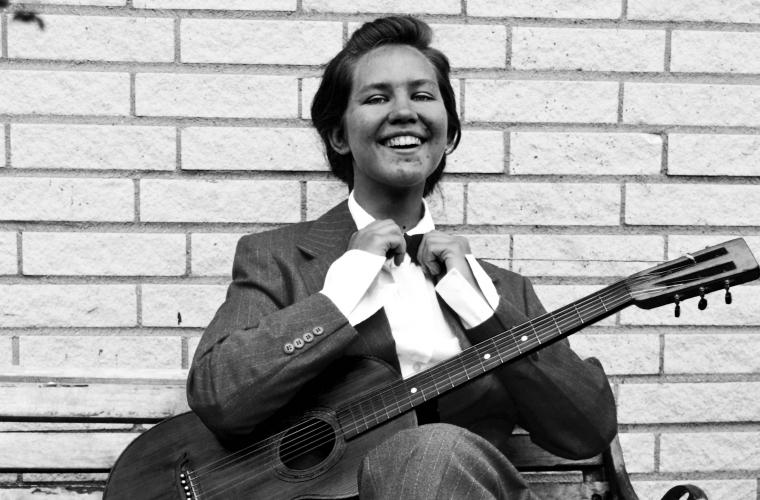 Hon ägnar sig åt en musikstil som hade sin blomstringsperiod för snart 100 år sedan. På de svartvita fotona ser hon ut som om hon vore hitskickad direkt från Vilda västern. Kanske ingen slump att hon senaste halvåret har pluggat arkeologi? Tjugofemåriga Felicia Nielsen med artistnamnet Shoutin’ Red är helt ointresserad av trender, och fördjupar sig istället i gammal akustisk countryblues. Med avancerad finger pickin’-stil på gitarren och hög, intensiv röst så blåser hon liv i stenkakemusik från 1920- och 30-talen.