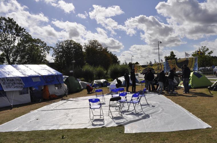 I förra veckan fick de besked av polisen att de var tvungna att lämna platsen. Malmö stad som äger marken har sagt nej till att de ska få vistas där. Polisen gav de tältprotesterande fram till i måndags på sig att packa ihop. Men palestinierna vill inte ge sig av frivilligt. Och efter det har inget hänt.