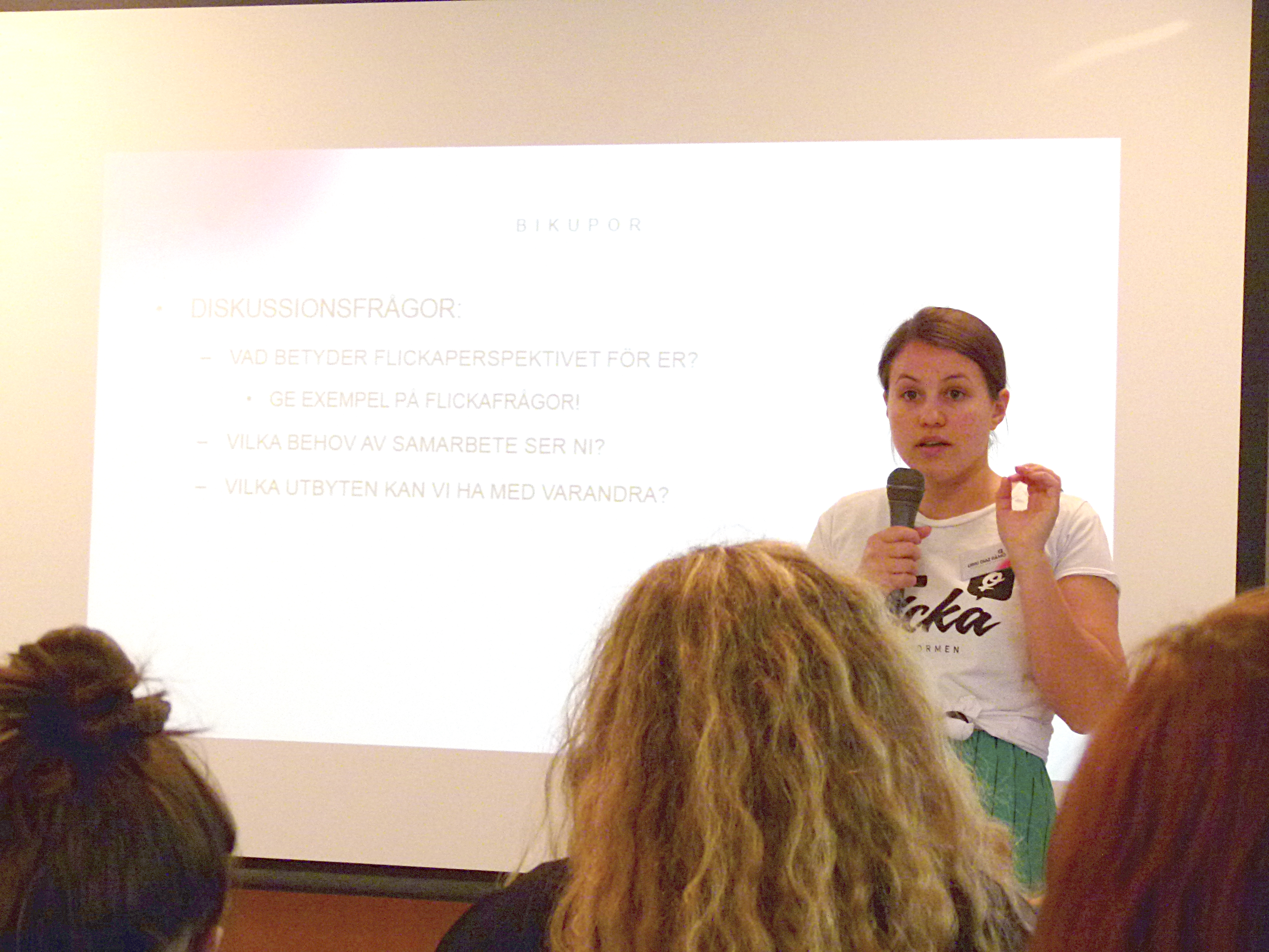 En torsdag i maj på Klara kyrkogata i Stockholm samlas representanter från olika organisationer med intresse för jämställdhet och flickors rättigheter. De flesta är tjejer, vi uppmanas att sätta oss bredvid personer vi inte känner och engagemanget är stort. Det är en av nätverksträffarna som Flickaplattformen anordnar i år. Frida Hasselblad, utbildningsansvarig för stiftelsen Crossing boarders och Liinu Diaz Rämö som är projektledare för Flickaplattformen håller i eventet.