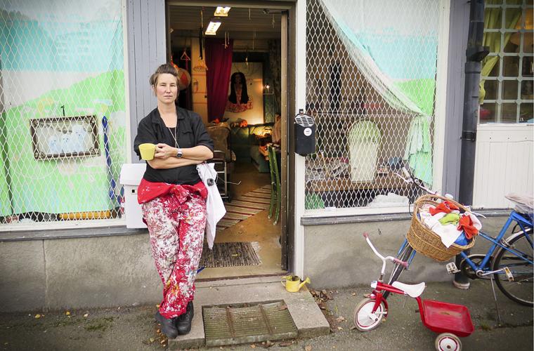 – Verksamheterna gör att det blir en social samvaro där vi håller lite koll på och inspirerar varandra. Många blir glada och nyfikna när dörren till min ateljé är öppen. Både vuxna och barn kikar in och en del frågar vad vi gör. Barnen som leker utanför känner jag igen och de känner igen oss, säger scenografen Petra Valén.