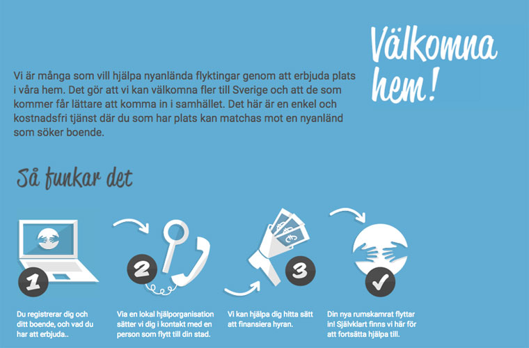 I går lanserades den ickekommersiella boendesajten Refugees-welcome.se som gör det möjligt för privatpersoner att öppna upp sina hem för nyanlända flyktingar.