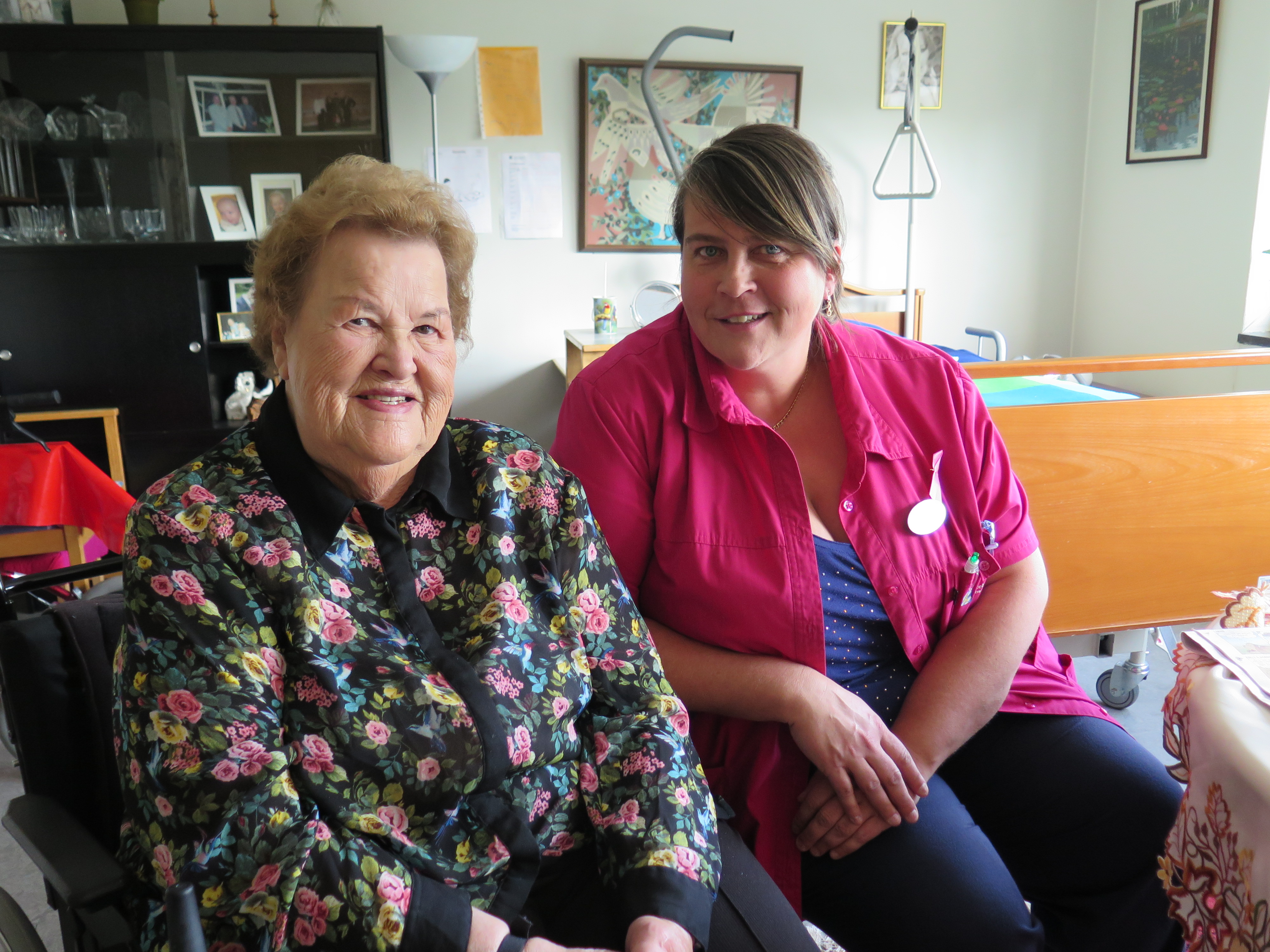 Carina Larsson är en av dem, och hon har jobbat där i snart 30 år. Inne i Ingrid Karlssons lilla lägenhet kollar de på bilder från en utflykt några veckor tidigare.