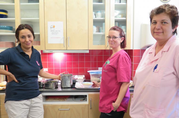 I köksdelen på en annan våning håller Kafiye Taspinar, Monika Hatou och Lise-Lotte Petersson på att göra i ordning mat. Alla är de positiva till arbetstidsförkortningen, även om den på Svartedalen inte är just en fast sextimmarsdag. Passen varierar som standard mellan fem och sju timmar, upp till totalt 30 timmar i veckan.
