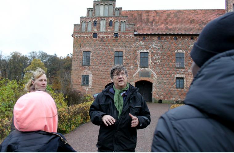 Det berättade Birger Emanuelsson när klassen passerade förbi Torups slott. En stund tidigare pratade gruppen om statarna, då de var utanför statarmuseet.